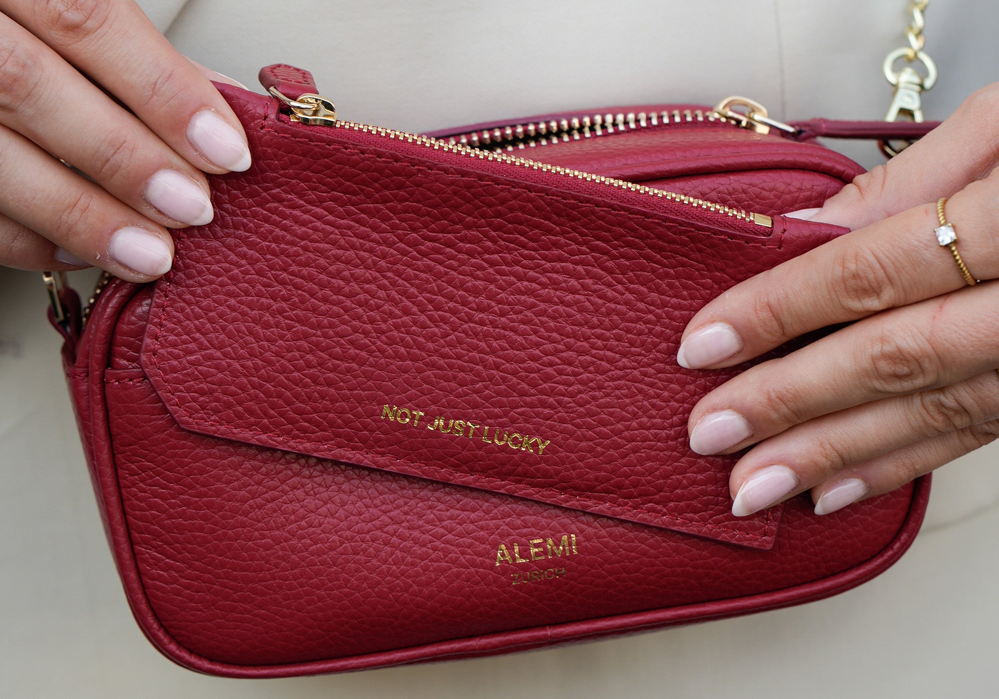 NOT JUST LUCKY is a limited-edition collection of leather pieces, each engraved with a quiet but powerful message.